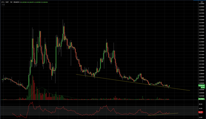 Chart of LTC's price action over the past few years against Bitcoin from TradingView.com