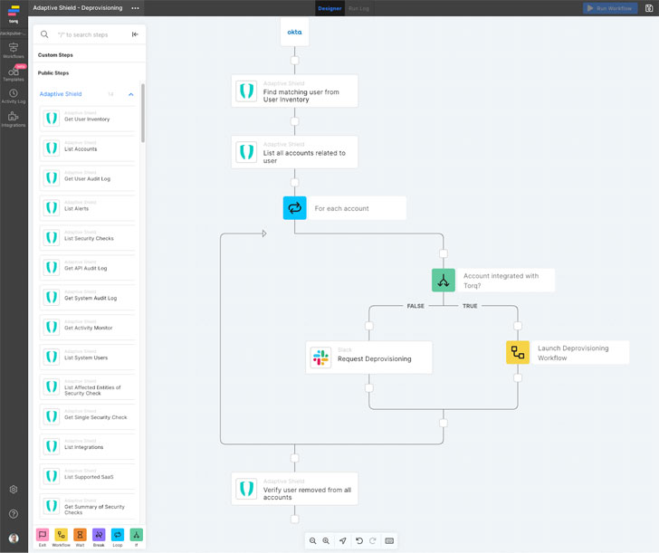 This workflow is just one example of how Adaptive Shield's integration with an orchestration tool streamlines the deprovisioning process through automation; not only to ease the burden of manual auditing and deactivating accounts, but also providing continuous visibility and control increasing the organization's SaaS security posture.